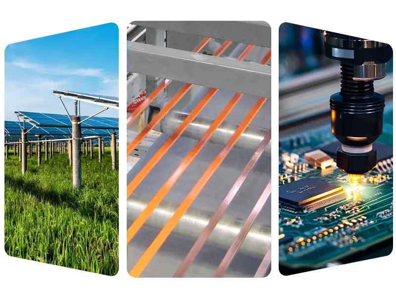 • Фотоэлектрическая область: массовое производство фотоэлектрических сварочных лент и шин, которые помогают компонентам эффективно проводить электричество.